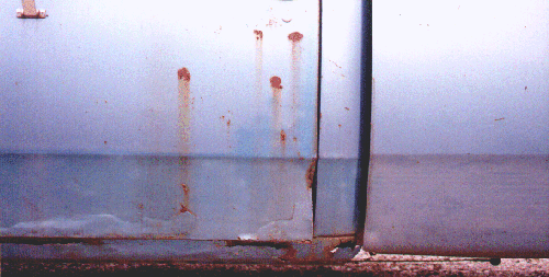 adhesives). There's a lot of fibreglass there popping off. It's on the doorskins as well as the rockers and